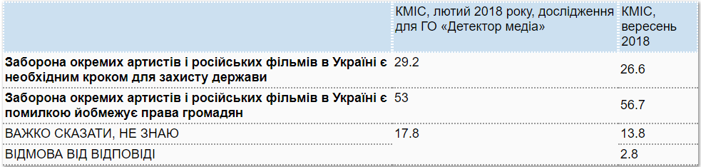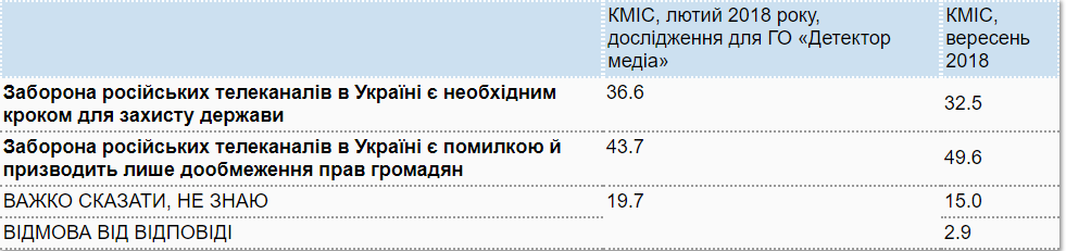 Кроме того, половина опрошенных в сентябре (50%) считает, что запрет российских телеканалов в Украине является ошибкой и приводит лишь к ограничению прав граждан - в феврале таких было 44%.