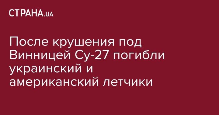 В Винницкой области в результате падения самолета во время учебно-боевого полета Су-27 погибли украинский и американский летчики. Об этом сообщают источники в Минобороны.