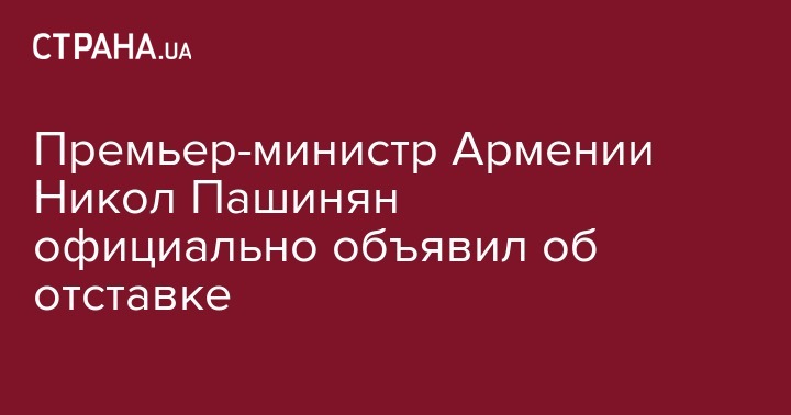 Премьер-министр Армении Никол Пашинян официально объявил об отставке