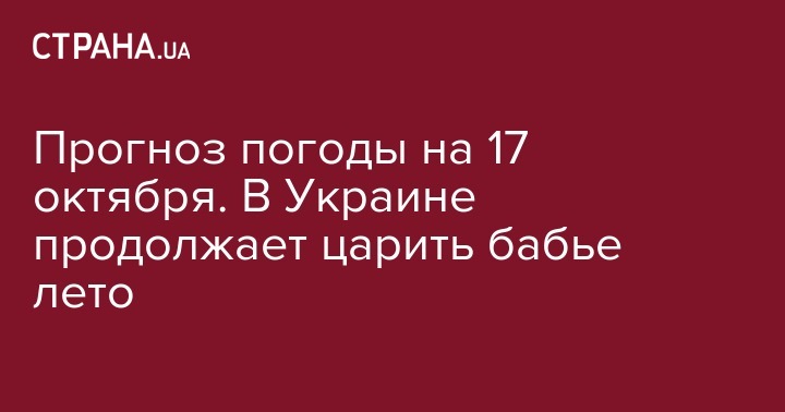 Сегодня, 17 октября, в Украине будет тепло и солнечно - продолжается бабье лето. Об этом сообщает Укргидрометцентр