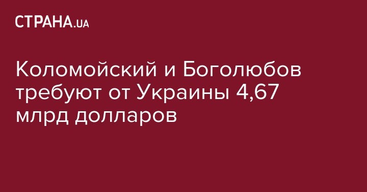 Миноритарные акционеры ПАО "Укрнафта" компании Littop Enterprises Ltd, Dridgemоnt Ventures Ltd и Bordo Management Ltd (все Кипр, подконтрольны Игорю Коломойскому и Геннадию Боголюбову), требуют от Украины $4,67 млрд в Стокгольмском арбитраже, пишет ZN.UA.