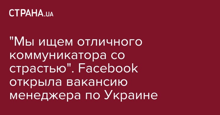 "Мы ищем отличного коммуникатора, который сможет сочетать страсть к таким интернет-услугам, которые предоставляет Facebook, и глубокое знание политической и регуляторной динамики в Украине и, желательно, во всем восточноевропейском регионе", - говорится в описании вакансии.
