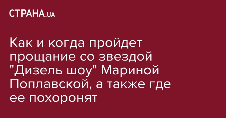 Как и когда пройдет прощание со звездой "Дизель шоу" Мариной Поплавской, а также где ее похоронят