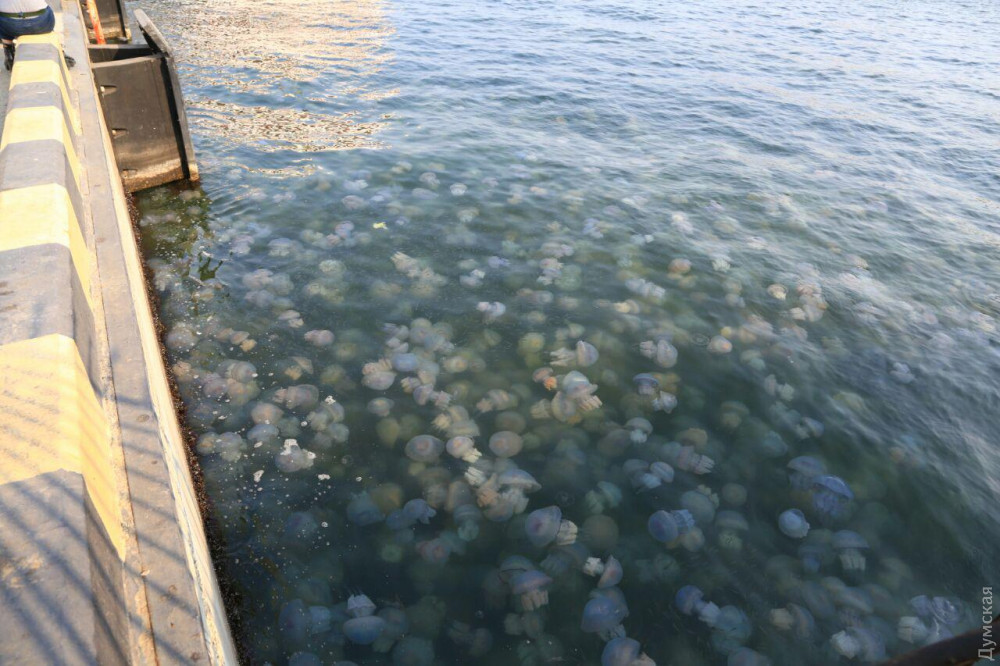 Так, в акватории Одесского порта можно наблюдать огромное количество медуз. В воде их полным полно, разного цвета и размера. Встречаются экземпляры от молочного до синего с красноватым оттенком цвета. Размер некоторых медуз достигает до 30 сантиметров в диаметре.