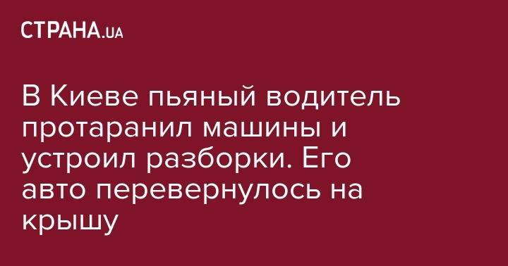 В Киеве пьяный водитель протаранил машины и устроил разборки. Его авто перевернулось на крышу