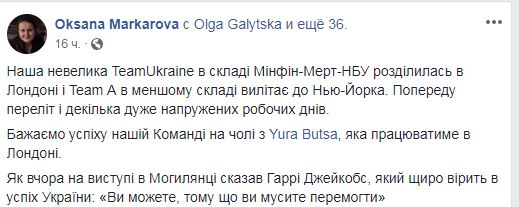 В свою очередь и.о. министра финансов Оксана Макарова подтвердила проведение роуд-шоу еврооблигаций. "Наша небольшая TeamUkraine в составе Минфин-МЭРТ-НБУ разделилась в Лондоне и Team A в меньшем составе вылетает в Нью-Йорк. Впереди перелет и несколько очень напряженных рабочих дней", - написала она в Facebook.
