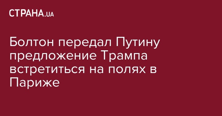 Болтон передал Путину предложение Трампа встретиться на полях в Париже