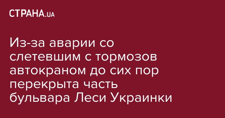 Из-за аварии со слетевшим с тормозов автокраном до сих пор перекрыта часть бульвара Леси Украинки