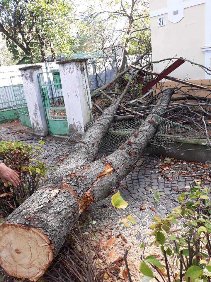 По состоянию на 15:00 на улице Яна Гуса, 37 дерево повредило забор и крышу частного дома. В Ротари-парке отломилась большая ветка каштана, а на улице Мытной - ветка клена.