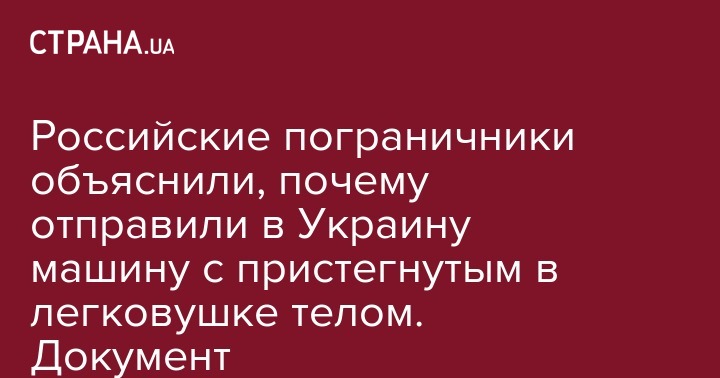 Российские пограничники объяснили, почему отправили в Украину машину с пристегнутым в легковушке телом. Документ