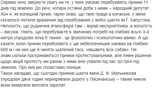 Кроме того, по информации уполномоченного Верховной Рады по правам человека в Луганской и Донецкой областях Павла Лисянского, на поверхности возле административно-бытового комбината шахты, протестуют еще 56 шахтеров.