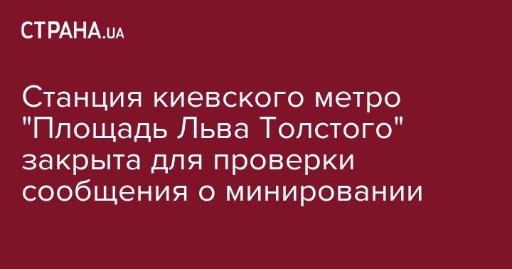 "Станция "Льва Толстого" + пересадка закрыта на вход и выход. Поступил анонимный звонок о минировании. Проводится проверка", - говорится в сообщении КП "Киевский метрополитен" на странице в Facebook во вторник вечером.