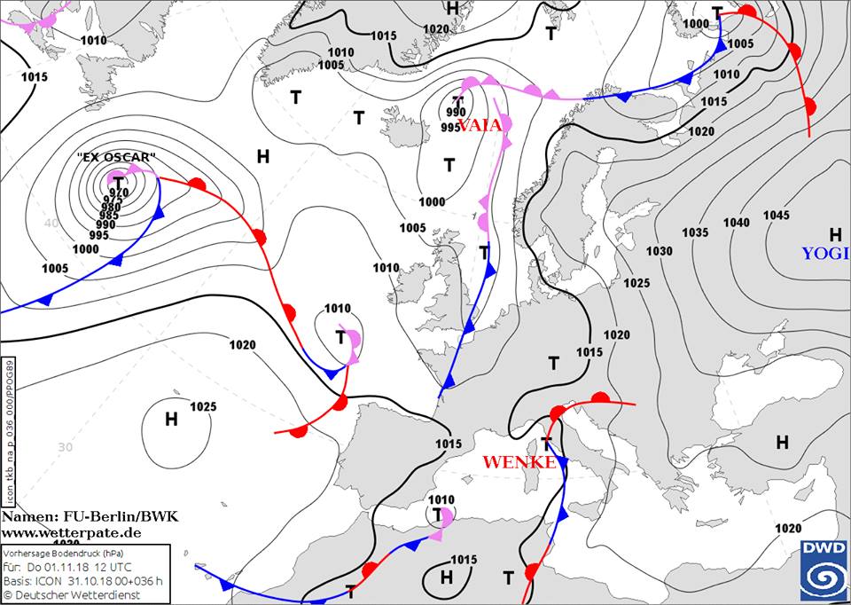"Мощные дожди идут благодаря циклону Wenke на юго-западе Европы. А у нас и сегодня, и завтра благодаря антициклону Yogi - без существенных осадков, местами туманы, морось", - написала она.