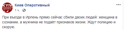 На вьезде въезде в Ирпень около 8 часов вечера сбили двух пешеходов. Об этом сообщает Киев оперативиный.