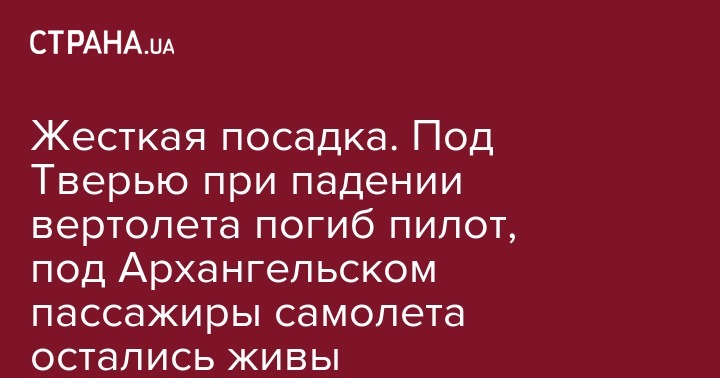 Жесткая посадка. Под Тверью при падении вертолета погиб пилот, под Архангельском пассажиры самолета остались живы