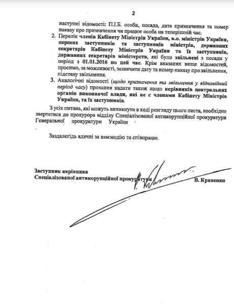 К слову, такие же сведения САП просила предоставить в отношении руководителей органов центральной исполнительной власти, которые не являются членами Кабмина, и их заместителей.