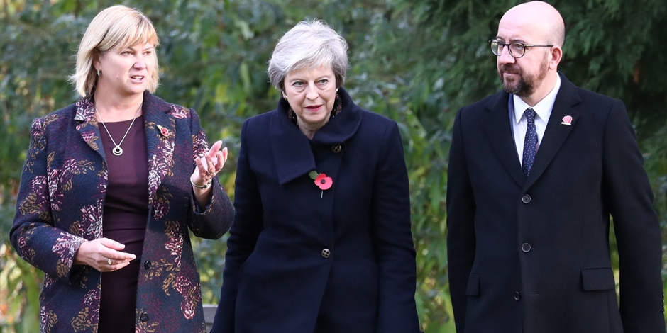 Кортеж премьеров Бельгии и Великобритании Шарля Мишеля и Терезы Мэй продолжил путь в Монс, где проходят мероприятия, посвященные 100-й годовщине окончания Первой мировой войны.