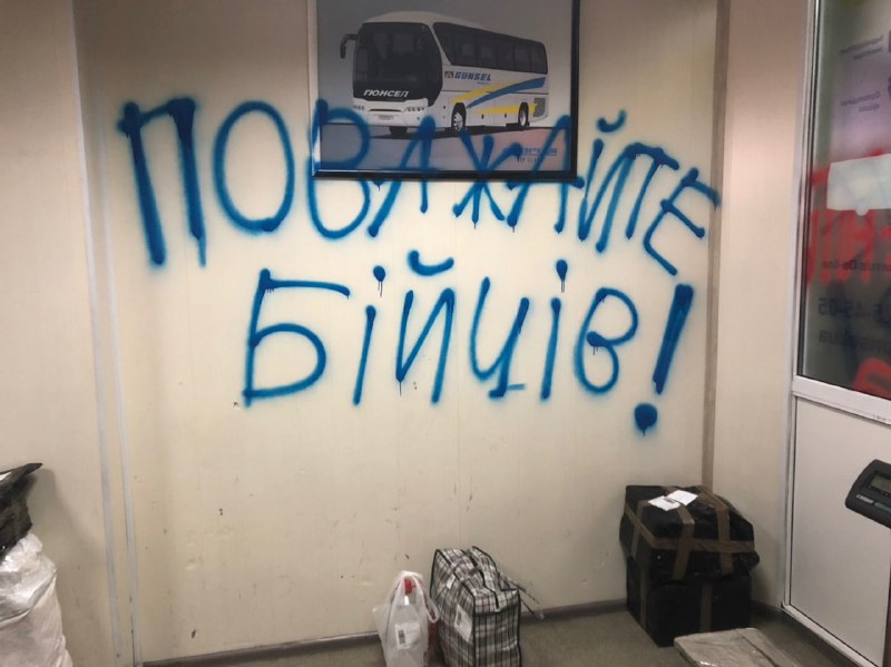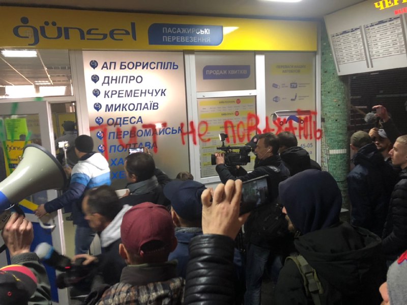 По информации издания, активисты собрались на территории автовокзала, они требуют встречи с директором предприятия. Члены С14 утверждают, что перевозчики отказывают возить участников АТО. Также в организации обращают внимание на рекламу автобусных перевозок в ОРДЛО и оккупированный Крым, которые, по их мнению, осуществляться не должны. Активисты разрисовали стены здания, оставив на них послания: "Тут не уважают бойцов", "Уважайте бойцов".