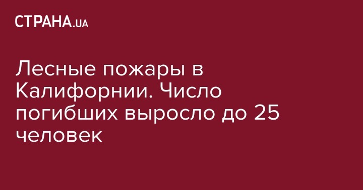 Число жертв масштабных лесных пожаров в американском штате Калифорния возросло до 25 человек, об этом сообщает "Интерфакс".
