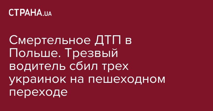 По информации издания, все три женщины - пешеходы. Вечером они переходили дорогу на освещенном переходе, где их и сбил 36-летний поляк за рулем автомобиля Hyundai Tucson. Известно, что 44-летняя и 39-летняя женщины погибли на месте. 46-летняя украинка была госпитализирована, но ее состояние оценивается как тяжелое.