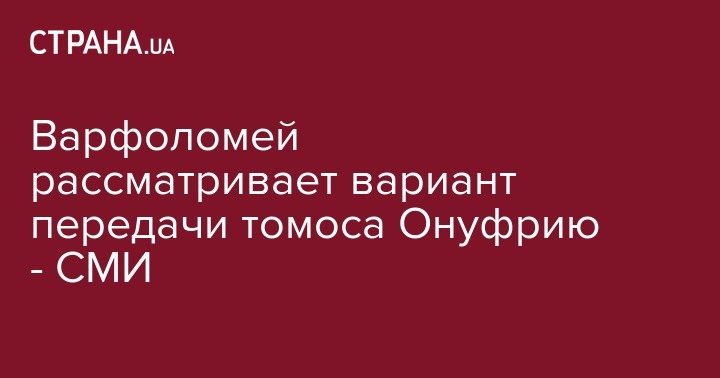 Константинопольский патриарх Варфоломей рассматривает вариант предоставления томоса об автокефалии главе канонической Украинской православной церкви (МП) митрополиту Онуфрию, вместо непризнанных церковных структур.