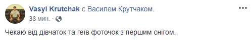 "Никак не пойму какая погода в Киеве?! Снег есть? Пробки на дорогах? Все зимнюю резину переобули? Ни слова в ленте об этом! Не пойму в чём дело".