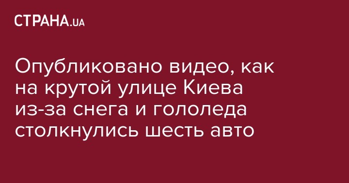 На улице Курдряшова в Киеве из-за снега и гололеда произошло масштабное ДТП. Сперва столкнулись сразу пять автомобилей. Затем, с горки, в них врезался шестой.