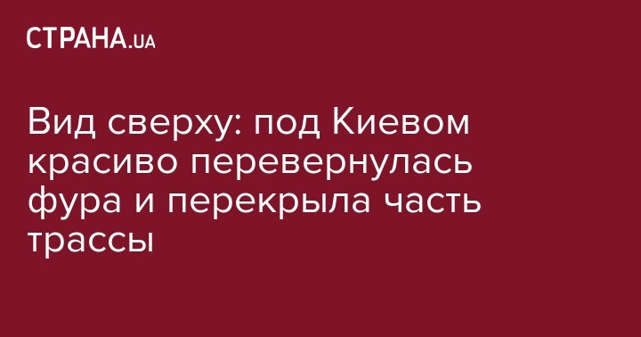 Вид сверху: под Киевом красиво перевернулась фура и перекрыла часть трассы