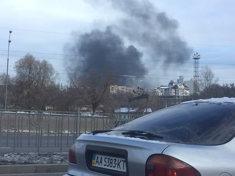 В центре Киева загорелись строительные вагончики, дым окутал небо города. Фото и видео