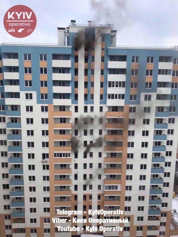 В Киеве горит новострой на Виноградаре, людей эвакуируют