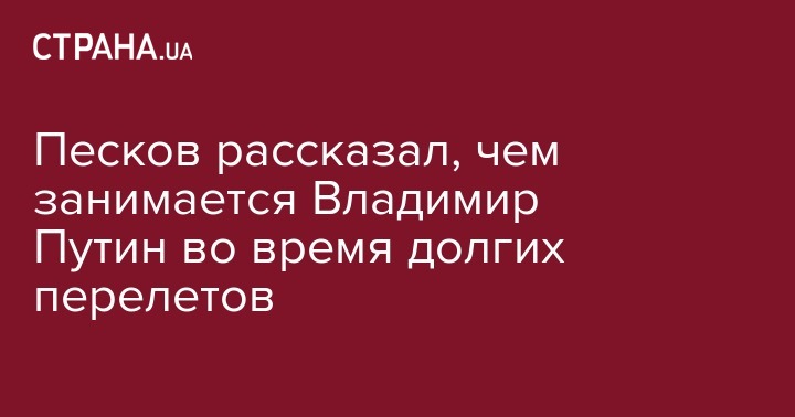 Песков рассказал, чем занимается Владимир Путин во время долгих перелетов