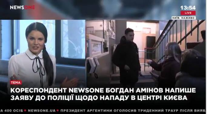 Как сообщала "Страна", на журналиста NewsOne напали после того, как к нему подошла жена Корчинского и попросила "по-хорошему уйти с митинга и не провоцировать парней". Сразу после этого журналисту плюнули в лицо.