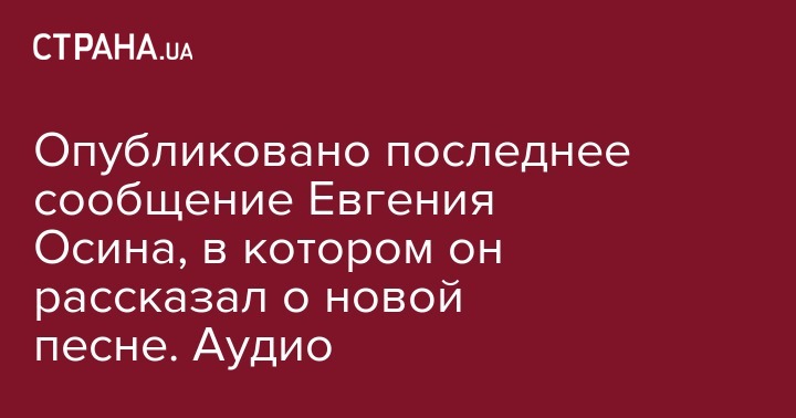 Опубликовано последнее сообщение Евгения Осина, в котором он рассказал о новой песне. Аудио