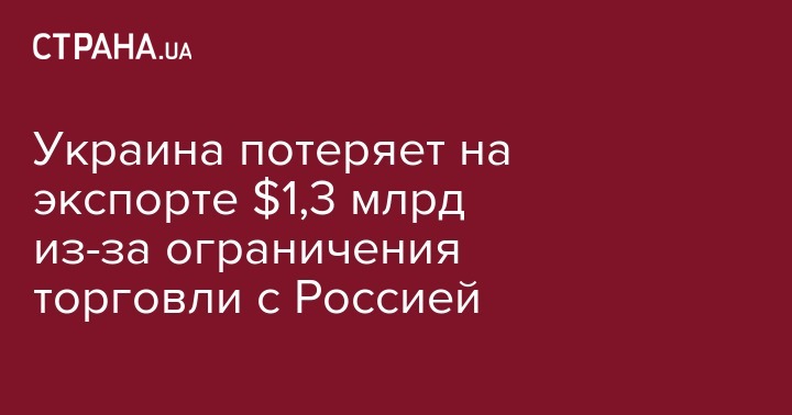 В 2016 году Украине не досчитается как минимум $1,3 млрд из-за действующих торговых ограничений с Россией. Об этом идет речь в отчете НБУ о финансовой стабильности, передает пресс-служба регулятора.