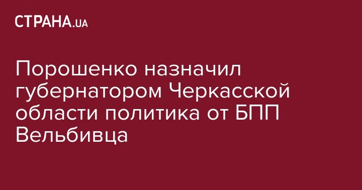 Порошенко назначил губернатором Черкасской области политика от БПП Вельбивца