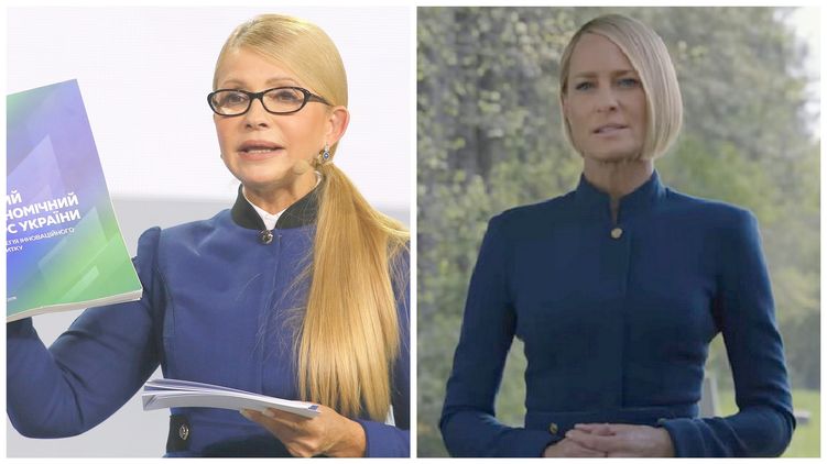 Фото: На презентации Нового экономического курса Украины кандидат в президенты Украины была одета в такой же костюм, как у героини сериала "Карточный домик"