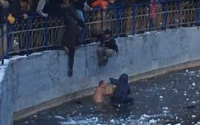 В Киеве бывший морпех вытащил школьника, упавшего в замерзшее озеро