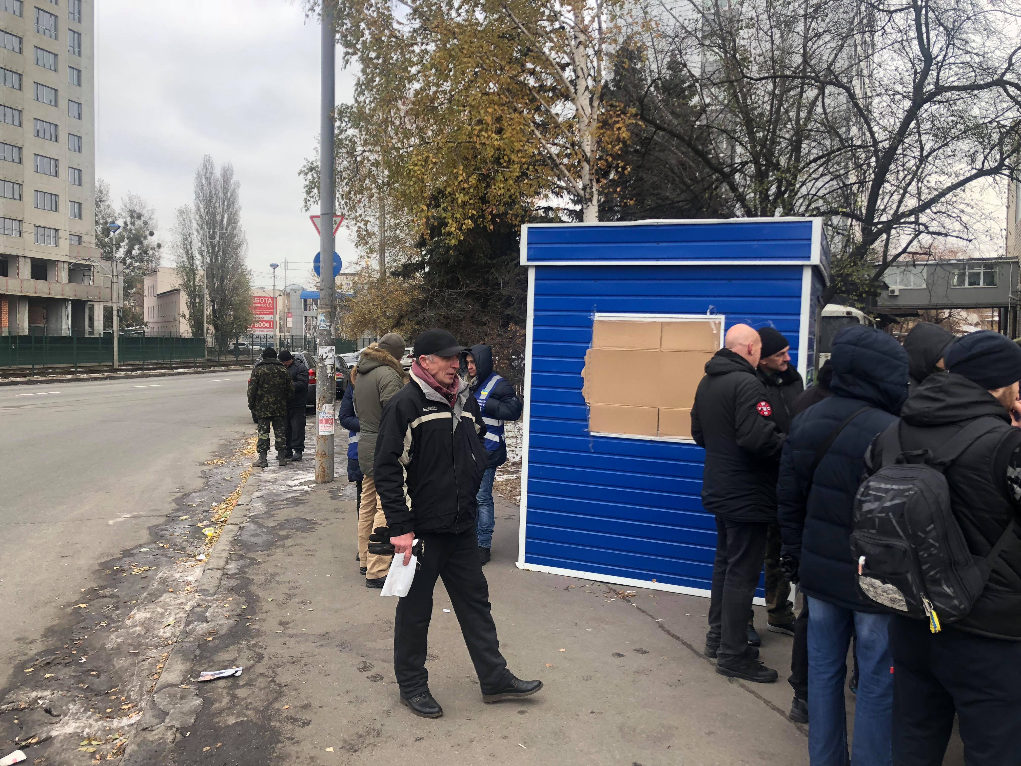 На месте находятся около 30 человек. Среди них - члены УНСО, праворадикальной Украинской национальной солидарной организации. Также у здания дежурят правоохранители.