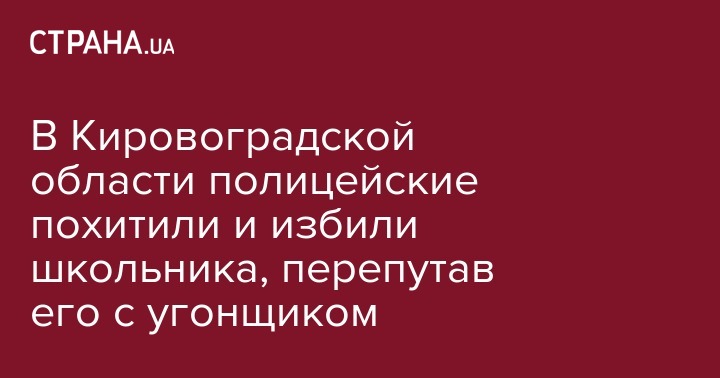 В Кировоградской  области полицейские похитили и избили школьника, которого перепутали с преступником. Об этом говорится в сюжете ТСН. Соседи позвонили родителям и рассказали, что их 16-летнего сына бросили в авто мужчины в штатском и увезли в неизвестном направлении.