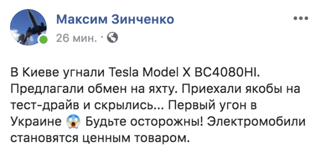 Как сообщает сайт AUTOGEEK, угонщики прозванивали в несколько автосалонов Киева в течение дня и предлагали обмен электромобиля на дорогую яхту. Судя по объявлению на auto.ria, данный электромобиль может стоить около 85 000 долларов.