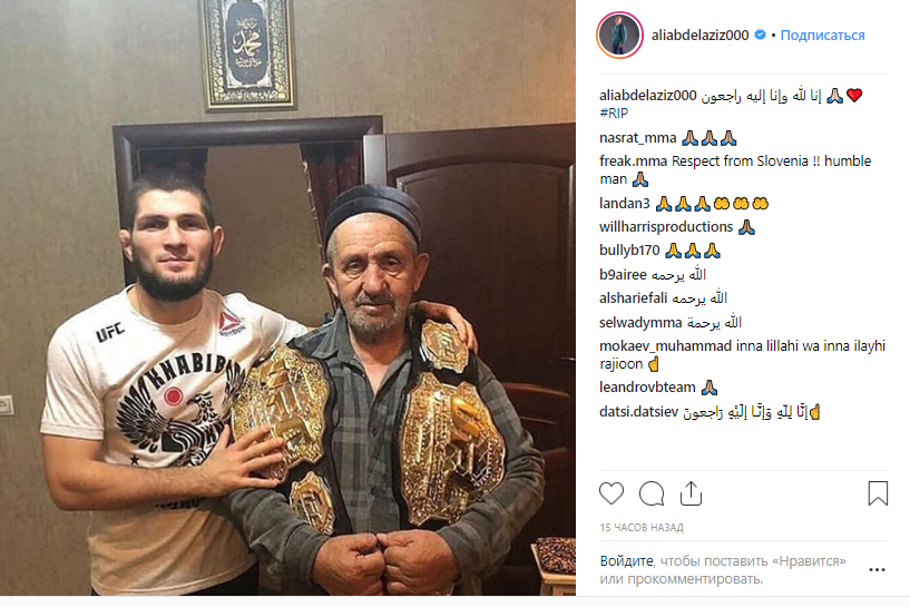 Об этом стало известно еще два дня назад, однако широкое распространение информация получила после публикации фотографии Нурмагомедова с дедушкой и чемпионскими поясами в Instagram менеджера Хабиба Али Абдель-Азиза.