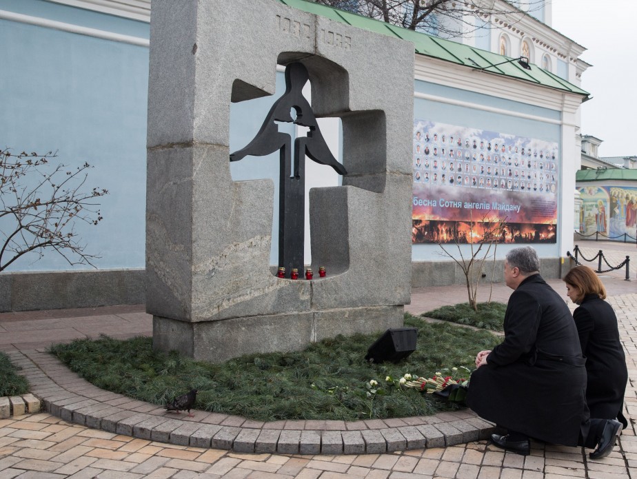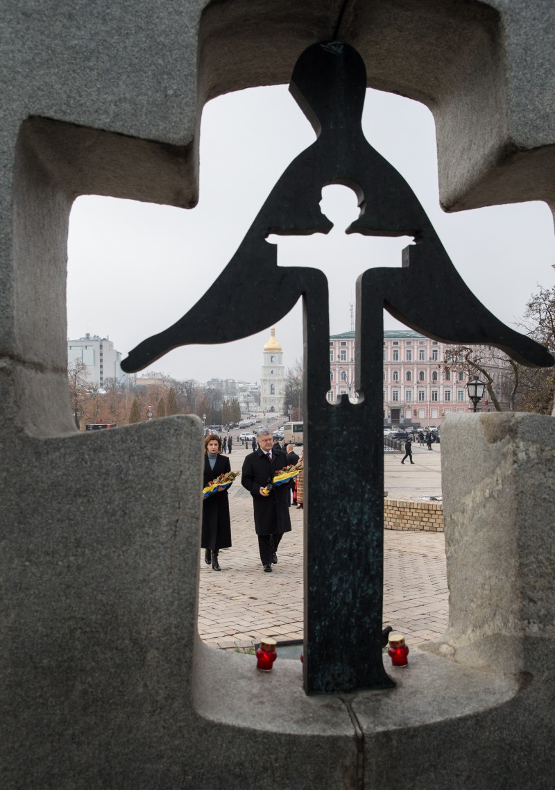 Мероприятия при участии президента прошли на Михайловской площади в Киеве, у Памятного знака жертвам Голодомора 1932-1933 годов в Украине. Петр и Марина Порошенко возложили колосковые композиции к мемориалу. Также у памятного знака были установлены зажженные лампадки.