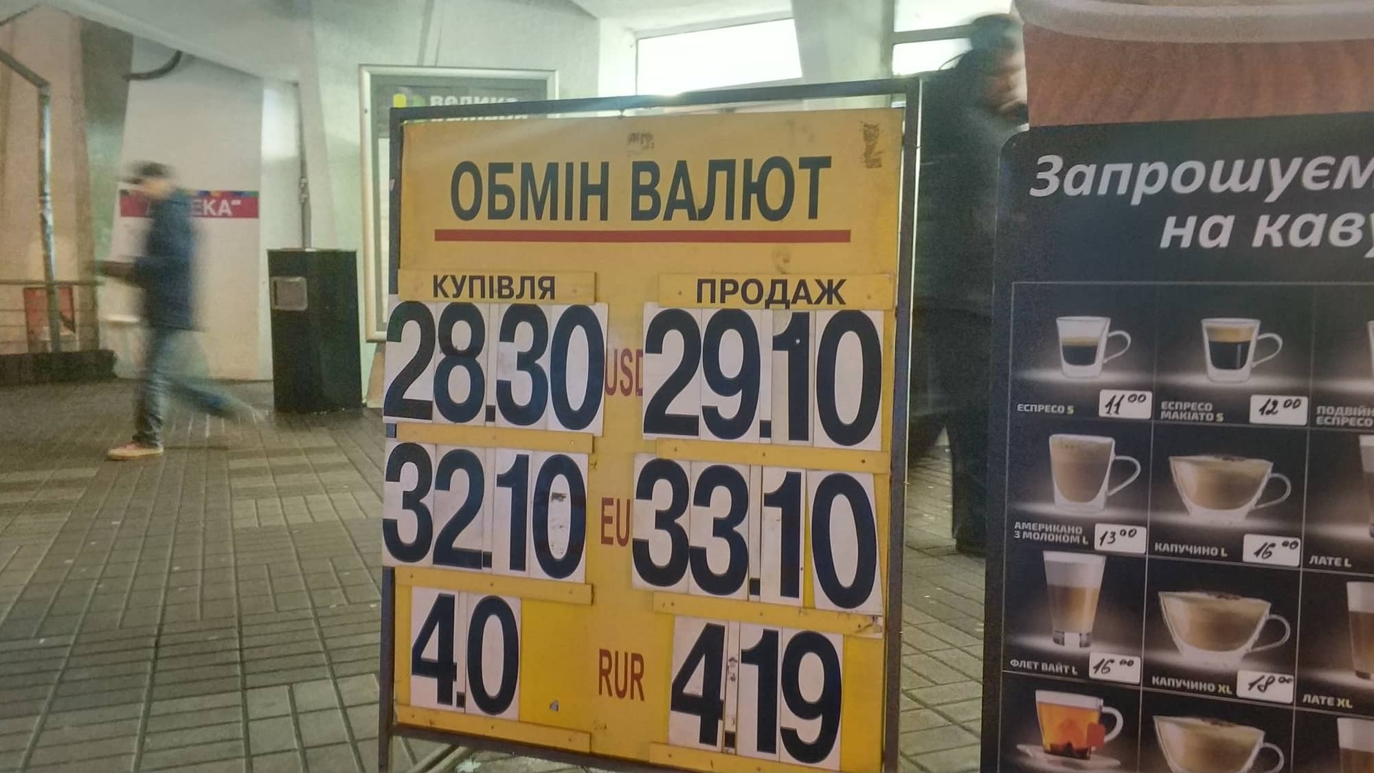 Пункт обмена валют в "Караване" на Луговой. Здесь вечером уже курс достиг 29,2. Фото: Страна