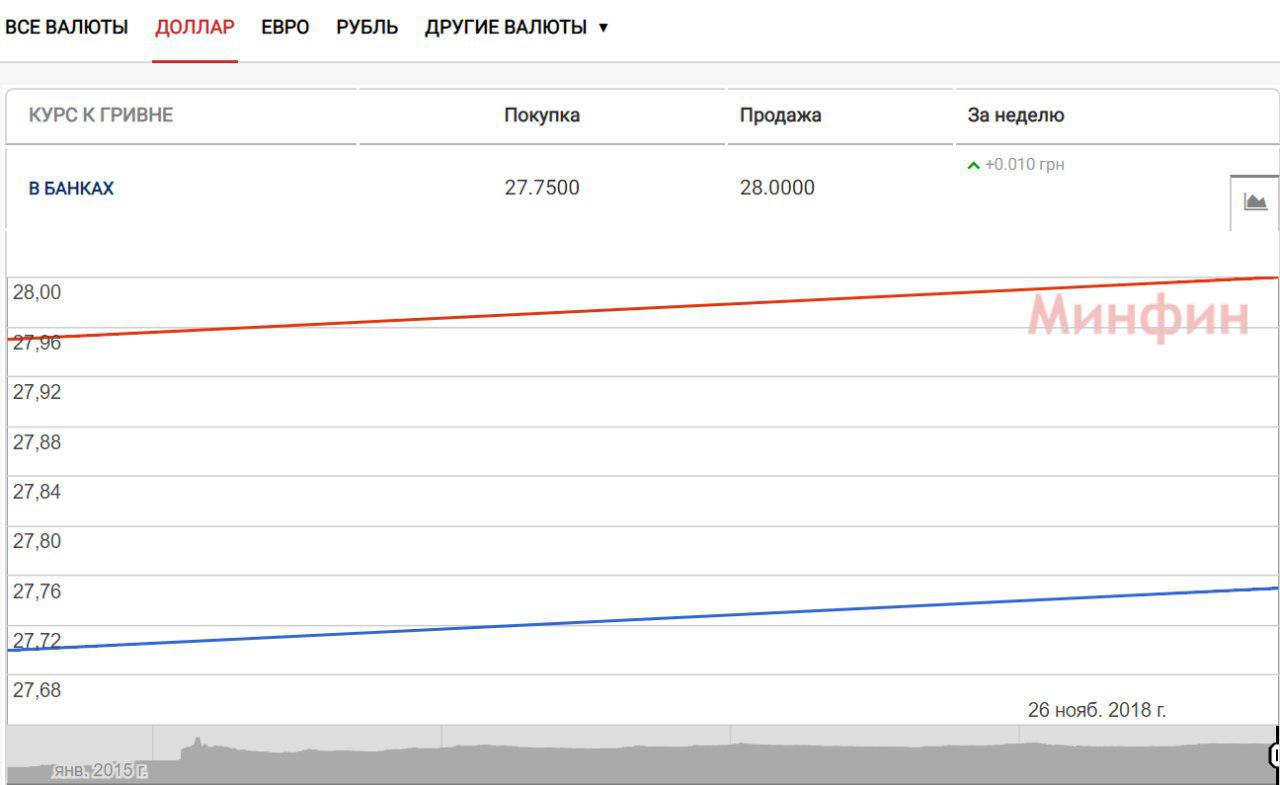 Нацбанк Украины утром установил официальный курс основных валют. Американский доллар подорожал на 10 копеек по сравнению с предыдущим банковским днем, 26 ноября, и составил 27,9 грн.