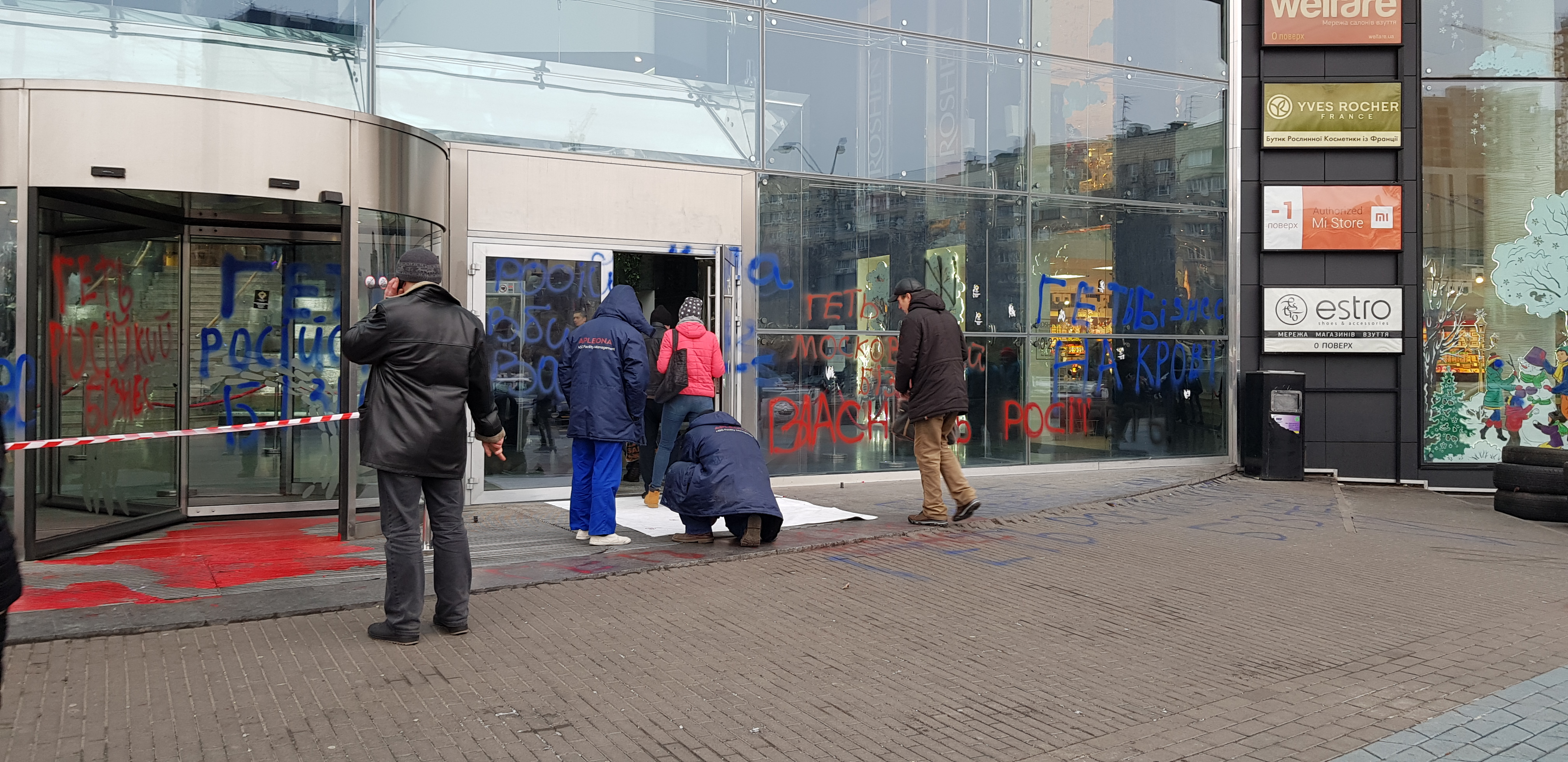 ТРЦ Ocean plaza в Киеве возобновил работу. Здание отмывают от надписей. Фото