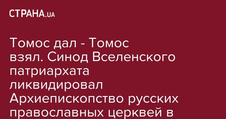 Томос дал - Томос взял. Синод Вселенского патриархата ликвидировал Архиепископство русских православных церквей в Европе