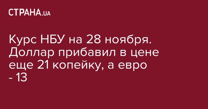 Таким образом, официальный курс НБУ на 28 ноября выглядит так: