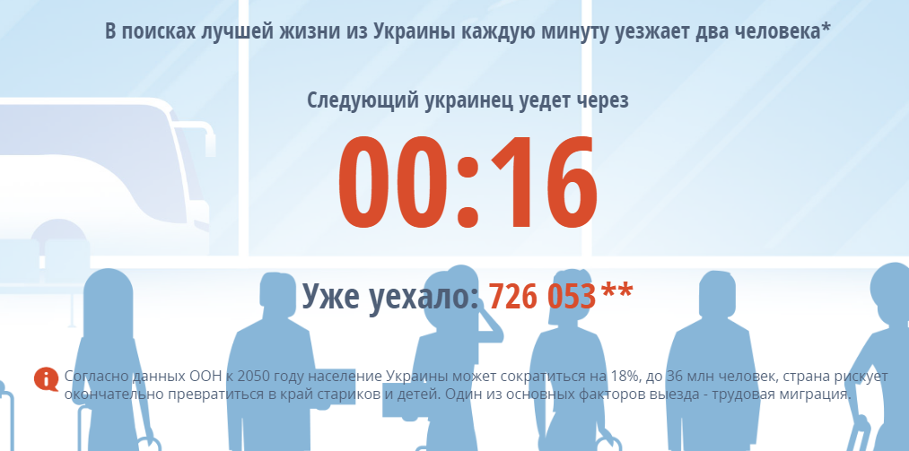 Так, с момента запуска платформы, которая в режиме живого времени подсчитывает число покинувших страну мигрантов, уехало 726 056 человек, их число увеличивается с каждой минутой. Отмечается, что автор идеи, который придумал запуск проекта, - неизвестен.