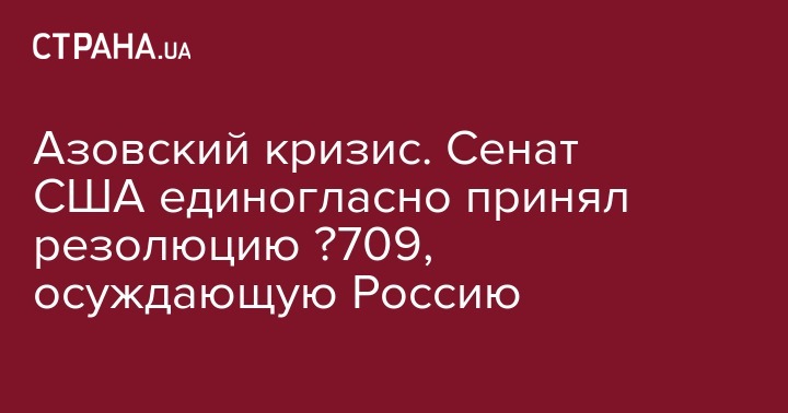 Азовский кризис. Сенат США единогласно принял резолюцию №709, осуждающую Россию