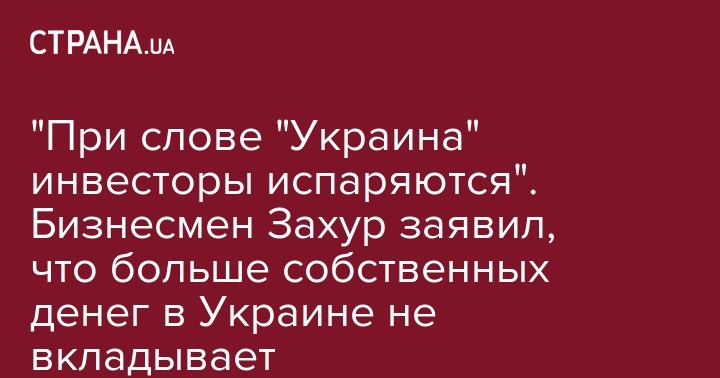 "При слове "Украина" инвесторы испаряются". Бизнесмен Захур заявил, что больше собственных денег в Украине не вкладывает